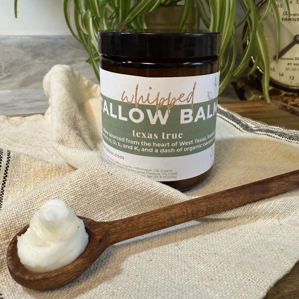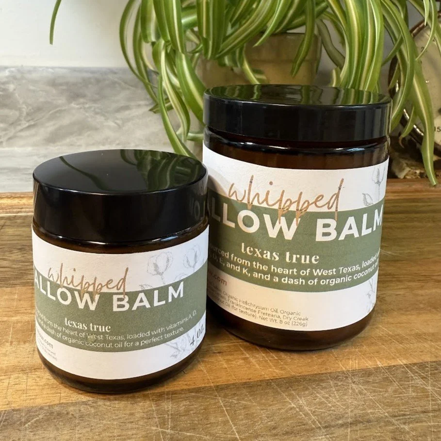 Categories: All Customer Favorites Mature Skin Acne & Blemishes Baby Care Sensitive Skin Shop All Customer Favorites Mature Skin Acne & Blemishes Baby Care Sensitive Skin Honey + Tallow Lip Balm Tallow Balm Frankincense + Lavender - Whipped Tallow Balm Aging Gracefully - Whipped Tallow Balm Brewed Bliss - Whipped Tallow Balm Lavender Meadows - Whipped Tallow Balm Texas True - Whipped Tallow Balm (Unscented)