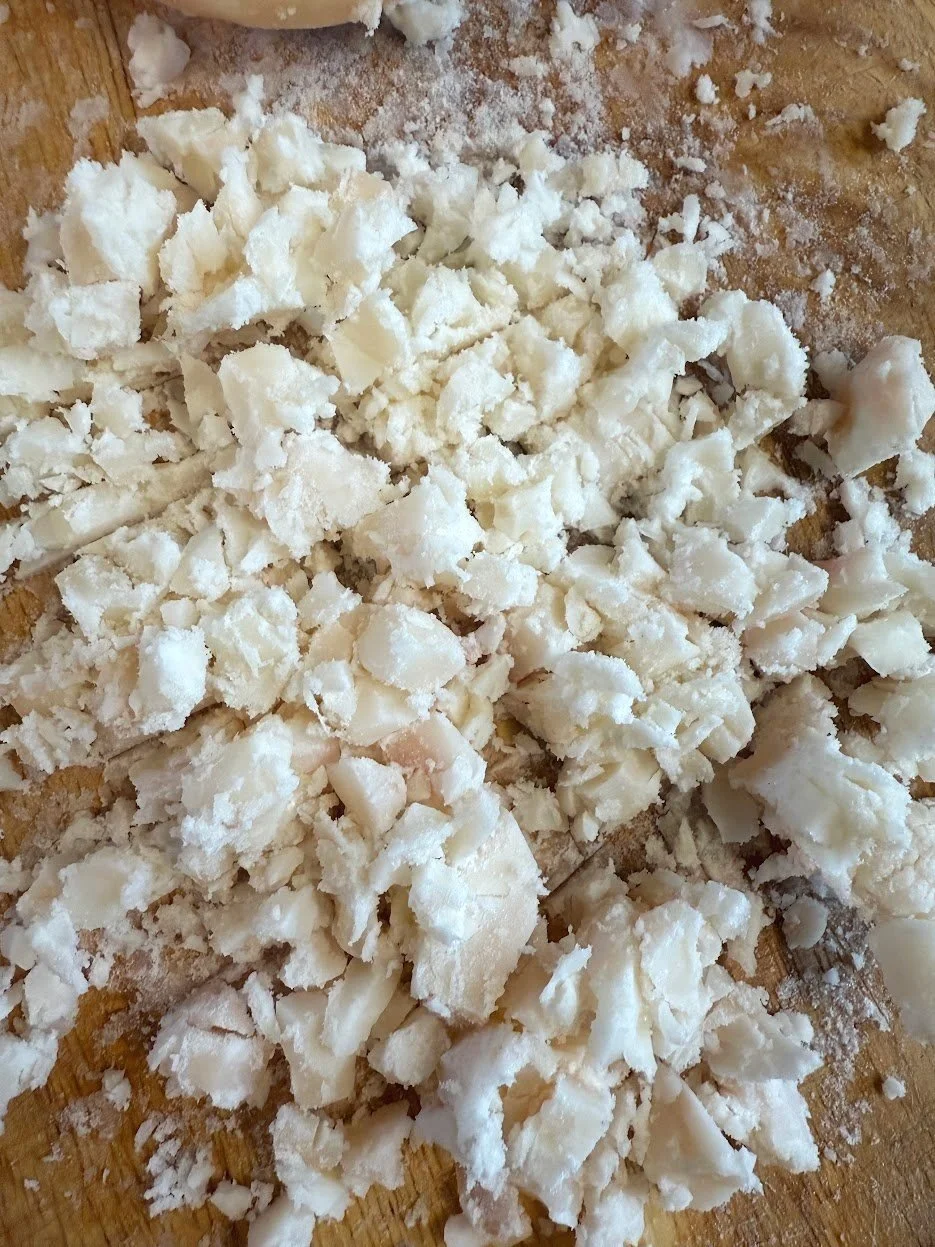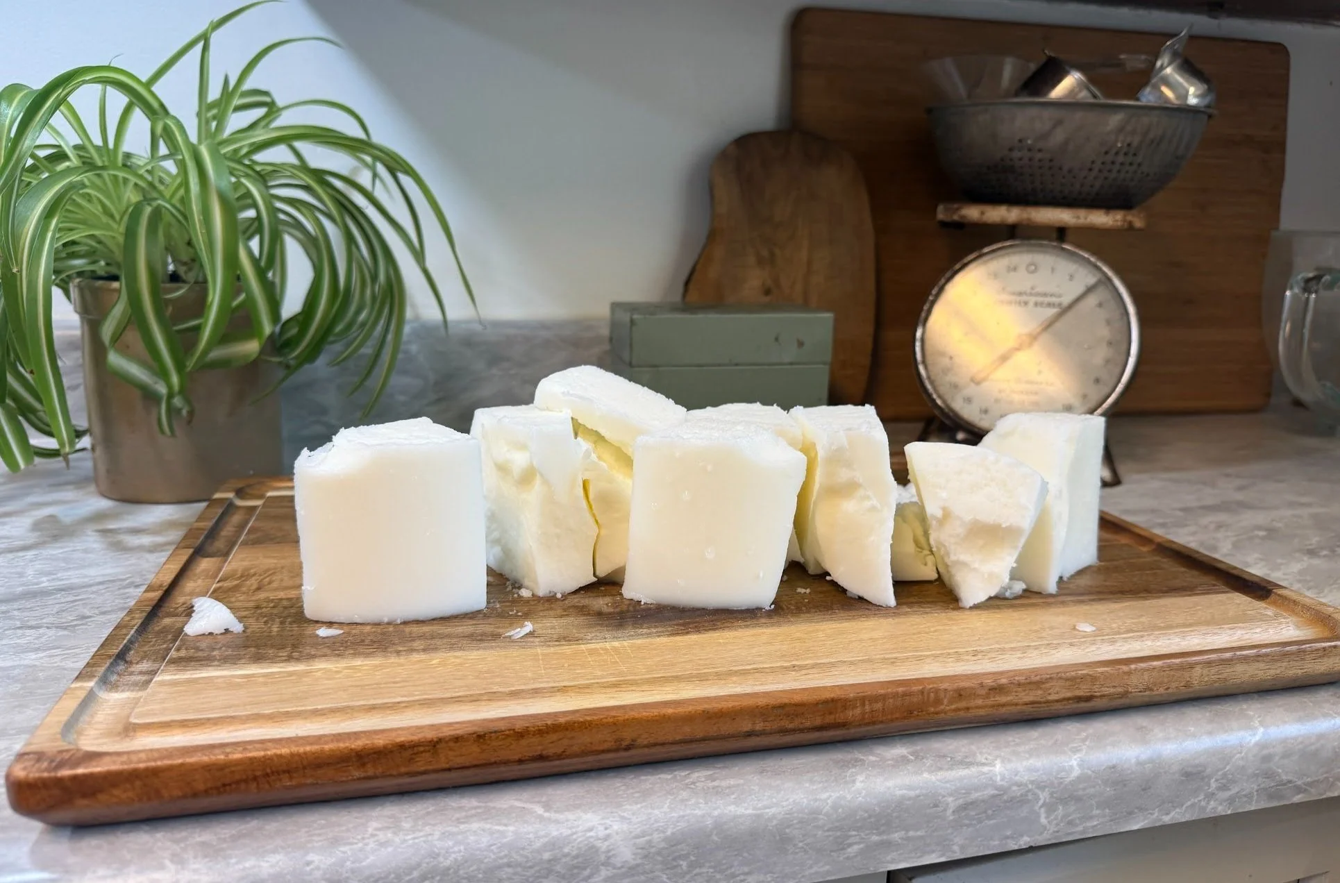 Rendering transforms raw fat, shown in the picture, into clean, usable tallow by gently melting and straining out impurities. It’s a patient, hands-on process that requires time and care to create a silky product that’s safe and nourishing for your skin.