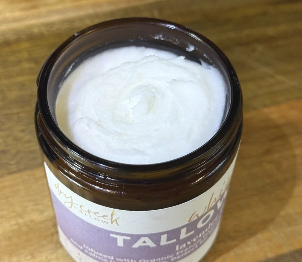 Once rendered, we whip our tallow into rich, creamy balms that glide on smoothly. We keep our ingredient list simple and natural so every jar delivers nourishing care straight from our kitchen to your skin.
